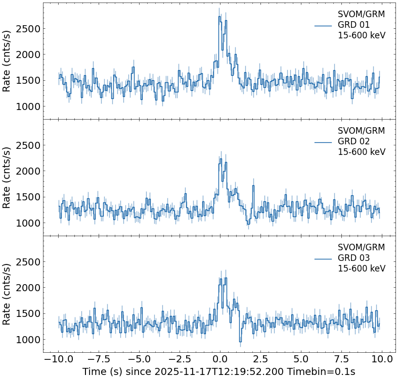 With the event-by-event data downloaded through the X-band ground station, the GRM light curve shows that this burst consists of multi-peaks with a T90 of 1.2 +1.4/-0.2 s in the 15-5000 keV band.