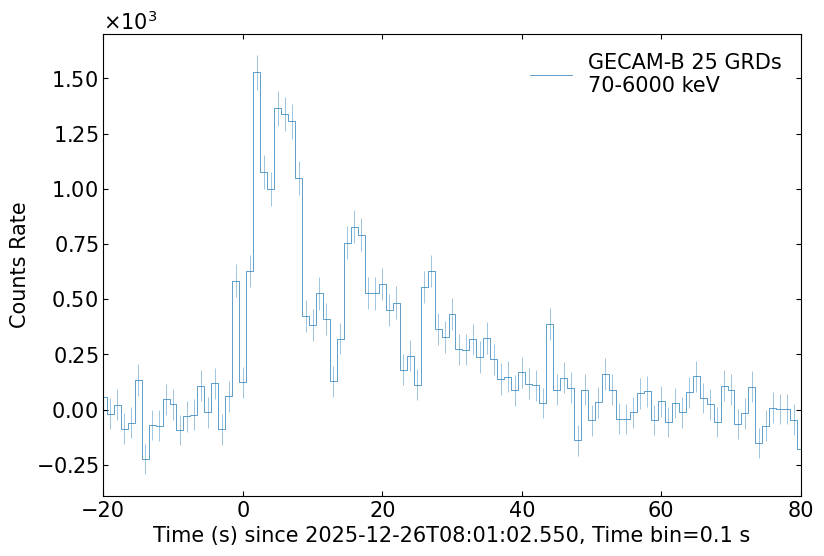 GECAM-B was triggered in-flight by a long burst GRB 251226A, at 2025-12-26T08:01:02.550 UTC (denoted as T0), which is also detected by SVOM/GRM and HXMT.