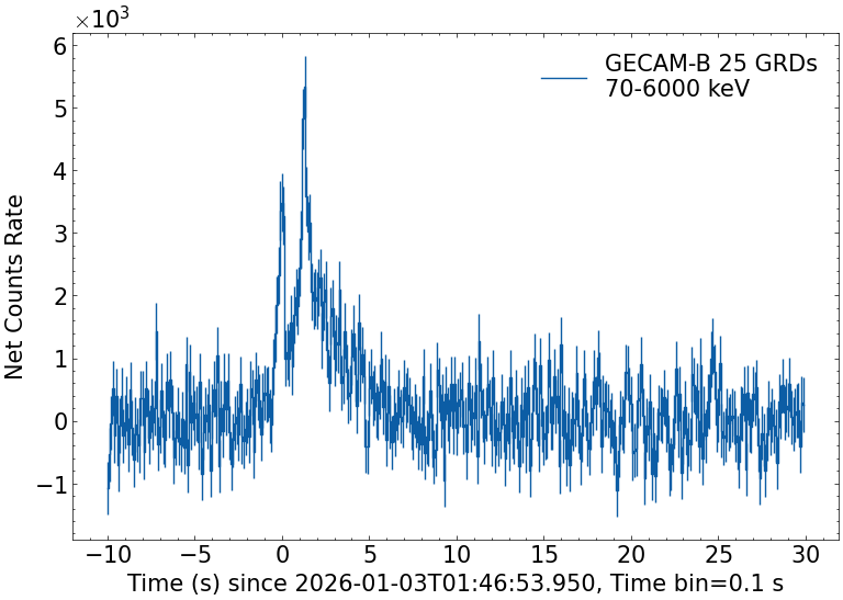 According to the GECAM-B light curves in about 70-6000 keV, this burst mainly consists of multiple pulses with a duration (T90) of 9.0 +7.0/-3.6 s.
