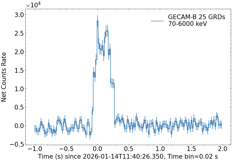 GECAM-B was triggered in-flight by GRB 260114A, at 2026-01-14T11:40:26.350 UTC (denoted as T0), which is also detected by Fermi/GBM (Fermi GBM team, GCN #43395), and Swift/BAT (Eyles-Ferris et al., GCN #43396).