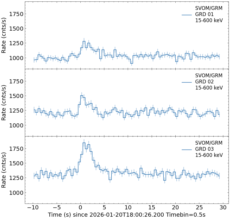 With the event-by-event data downloaded through the X-band ground station, the GRM light curve shows that this burst consists of a pulse with a T90 of 8.5 +5.0/-3.5 s in the 15-5000 keV band.
