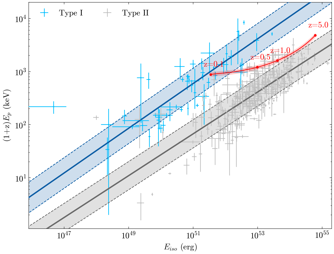 The localization of GRB 260208B in the 'Amati' relation diagram is shown at: