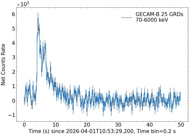 According to the GECAM-B light curves in about 70-6000 keV, this burst mainly consists of multiple pulses with a duration (T90) of 28.8 +0.1/-0.2 s.