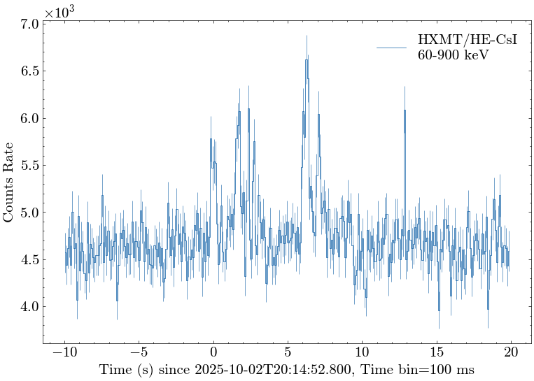 The Insight-HXMT/HE light curve mainly consists of multiple pulses with a T90 of 13.8 +2.3/-3.1 s. The 1s peak rate, measured from T0+6.050 s, is 1080 cnts/sec. The total counts from this burst is 4528 counts.