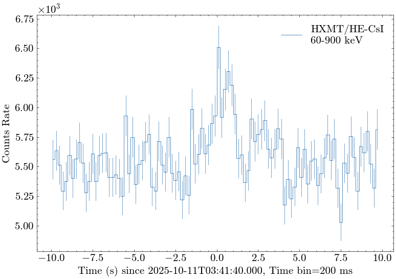 The Insight-HXMT/HE light curve mainly consists of a single pulse with a T90 of 3.6 +1.6/-1.4 s. The 1s peak rate, measured from T0, is 788 cnts/sec. The total counts from this burst is 1444 counts.